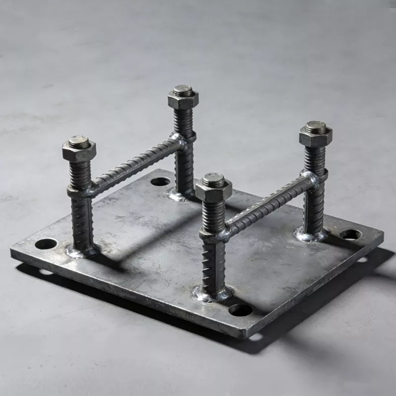 Уграђена челична плоча: дебљина 6 мм ~ 50 мм, дужина и ширина 100 мм × 100 мм ~ 1000 мм × 1000 мм (подржава сечење посебног облика); 2. Уграђени вијак: спецификација М10~М64, дужина 100мм~2000мм, прецизност навоја 6Х;3. Уграђени носач/везни комад: пречник рупе, размак рупа и облик прилагођени према цртежима, укупна толеранција величине ≤± 0,3 мм