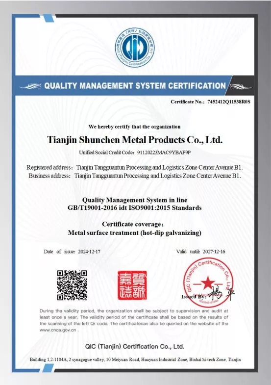 Више руководство Схунцхен-а има преко 20 година искуства и технологије у производњи топлог цинковања.