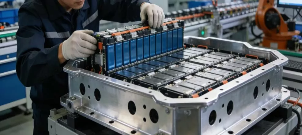 Сектор транспорта: Крупни план склопа склопа акумулатора за ново енергетско возило