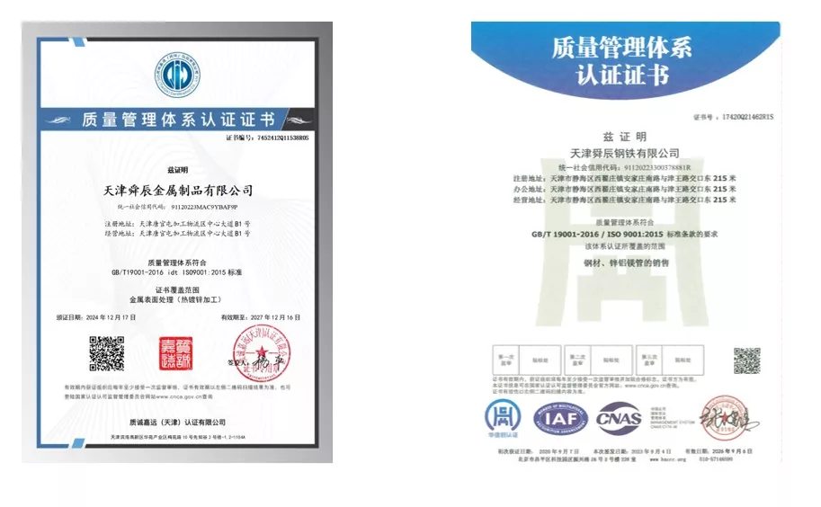Зашто изабрати нас? Индустрија Тиањин Схунцхенг може се похвалити годинама акумулиране производне технологије, одржавајући 12-годишњи рекорд нула неиспуњених обавеза и нула годишњих инцидената у квалитету, постављајући чврсте темеље за квалитет производа. Компанија се стриктно придржава националних стандарда производње и поседује ИСО 9000, 3А системске сертификате и ЕУ ЦЕ сертификат. Са процесом од 12 корака и 3-слојним механизмом пуне инспекције, постиже нулту квалитету и безбедносне инциденте годишње и нулту задану наруџбу током 12 година, демонстрирајући своју доказану снагу. Сваки готов производ се подвргава сушењу, контроли и финој завршној обради пре паковања и отпреме, обезбеђујући врхунски квалитет. Компанија запошљава преко 300 производних радника и може да произведе 236 спецификација ЕРВ челичних цеви, нудећи комплетан опсег спецификација и подржавајући прилагођавање како би се прецизно задовољиле различите потребе.