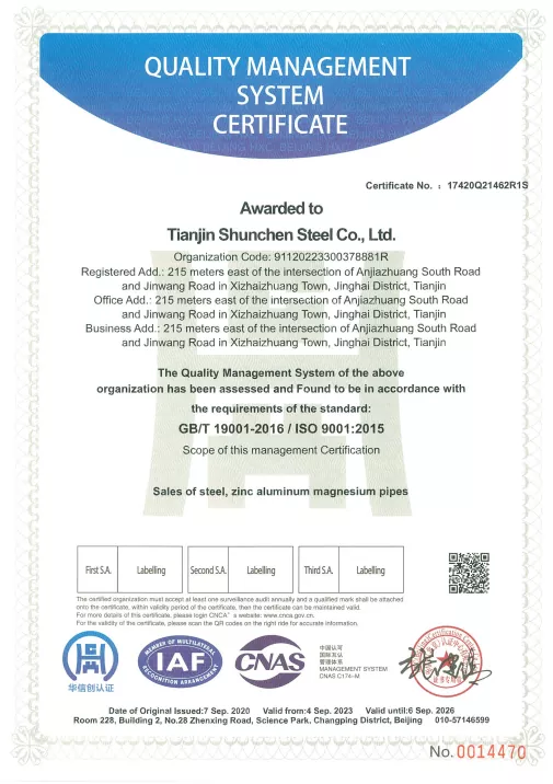 Наше поцинковане округле цеви долазе у широком спектру спецификација, са 236 различитих величина које задовољавају различите потребе. Наши производи имају сертификат ИСО9001, поседују ИСО 9000, 3А системске сертификате и ЕУ ЦЕ сертификат. Такође пружамо извештаје о материјалима, сертификате о испитивању дебљине премаза цинка и извештаје о инспекцији квалитета треће стране. Одабир поцинкованих округлих цеви компаније Схунцхун не само да вам пружа услуге куповине на једном месту, већ и подршку 24/7 након продаје и праћење у реалном времену на 18 кључних тачака, што вашу набавку чини безбрижнијом и поузданијом.