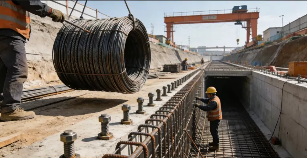 Типичан случај: пројекат владине галерије цеви у одређеном граду у Тиањину, прилагођени челични калем високе чврстоће ХРБ500 (пречник 10 мм), чврстоћа ≥ 500 МПа, затезна чврстоћа ≥ 630 МПа, испуњавање дугорочних захтева за коришћење подземног влажног окружења галерије цеви. Након водоотпорног паковања и транспорта, обрађује се и ојачава унапред уграђеним вијцима, са дозом од 190 тона, ефективно побољшавајући отпорност на пукотине и носивост конструкције галерије цеви, испуњавајући општинске инжењерске стандарде прихватања и обезбеђујући безбедан рад галерије цеви.
