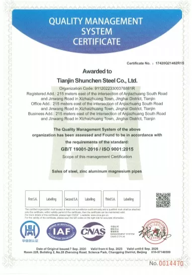 Гарантни период: 18 месеци од датума испоруке производа, који покрива питања квалитета као што су неусаглашеност материјала, неусаглашеност са механичким перформансама, толеранција димензија прекорачења стандарда, површински дефекти (не оштећења при транспорту) итд. (искључујући оштећења од сечења и факторе више силе).