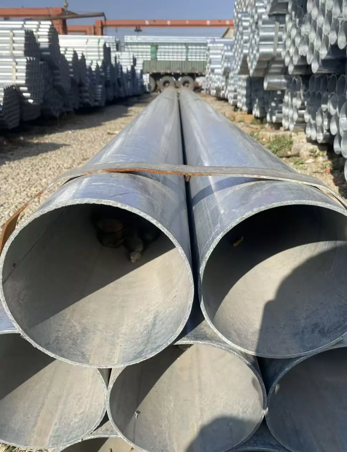 Што се тиче избора материјала, користе се висококвалитетне САВ заварене цеви као што су К235Б/К345Б/Кс70. Користе се напредни двострани заваривање под водом и антикорозивни процеси топлог цинковања. Производни процес укључује три процеса пасивизације како би се побољшала отпорност поцинкованог производа на алкалну корозију, што резултира густим завареним спојевима високе чврстоће. Сваки готов производ се суши, прегледа и фино поправља пре паковања и отпреме. Доступан је широк спектар спецификација, са 236 произведених спецификација. Такође је подржано прилагођавање цеви великог пречника са дебелим зидовима.