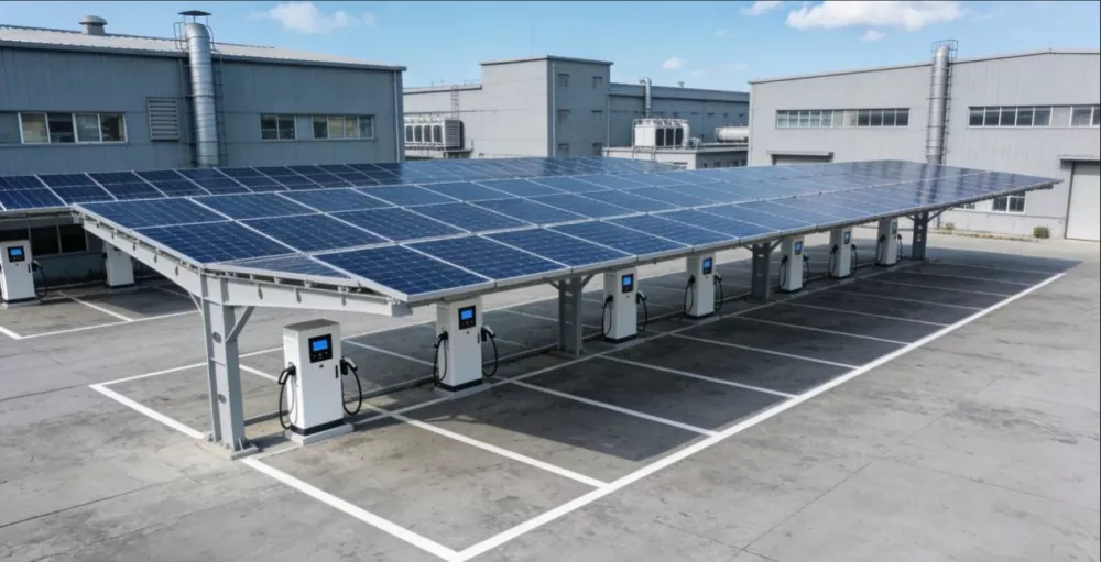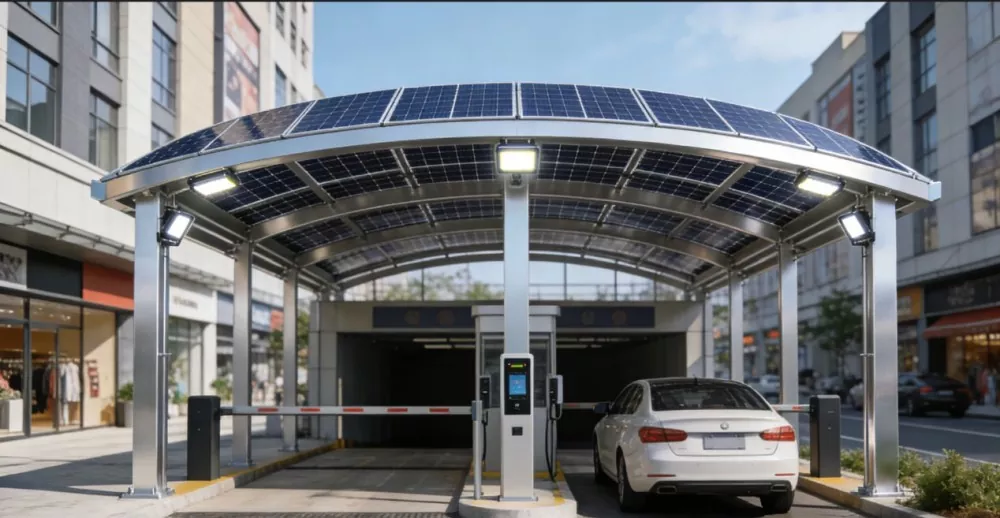 Соларна конструкција надстрешнице компаније Схунцхен Индустриал има различите функције и прецизно позиционирање. Као основна заштита за паркирање, ефикасно се одупире излагању сунцу, киши и притиску снега, пружајући свеобухватну заштиту за боју и компоненте возила и повећавајући удобност паркирања. Истовремено, служи као идеална платформа за фотонапонске електране, обезбеђујући стабилну основу за фотонапонске модуле, обезбеђујући да панели примају сунчеву енергију под оптималним углом нагиба и равномерно распоређујући оптерећење на основу, гарантујући структурну стабилност и сигурност. Штавише, ова структура поседује моћне могућности конверзије и коришћења енергије, претварајући соларну енергију у електричну енергију за повезивање на мрежу или локалну потрошњу, као што је напајање станица за пуњење, задовољавање потреба за електричном енергијом у парку, промовисање замене чисте енергије и смањење трошкова електричне енергије. Што је још важније, подржава прилагођавање у више сценарија и може се интегрисати са станицама за пуњење, паметним осветљењем, системима за надзор итд., како би се створило интегрисано решење за паметно паркирање које комбинује „паркирање + производња енергије + пуњење“.