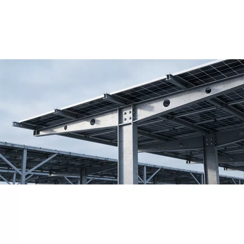 Схунцхен Индустриал је помно израђена Соларна конструкција надстрешнице је иновативни композитни систем који интегрише фотонапонску производњу енергије и заштиту возила од сунца и кише, обухватајући и челичне и алуминијумске структуре. Користи робустан оквир направљен од челичних профила и четвртастих цеви, паметно интегришући носаче фотонапонских модула и високоефикасне фотонапонске панеле на врху, док је база опремљена стабилним стубовима, темељима и прецизним ограничењима за паркирање. Тиме се постижу двоструке предности високе ефикасности „заштита од сунца и кише + производња електричне енергије повезана са мрежом“, што га чини широко применљивим на различите сценарије паркирања као што су индустријски паркови, фабрике, комерцијални комплекси и стамбена подручја.