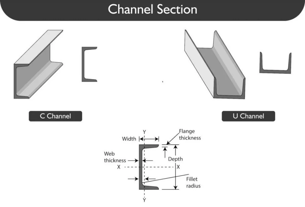 Челични У пресек који производи Тиањин Схунцхен Индустри је челик са отвореним крајем формиран врућим ваљањем или хладним савијањем, са попречним пресеком у облику слова У и одличном отпорношћу на савијање и торзију.